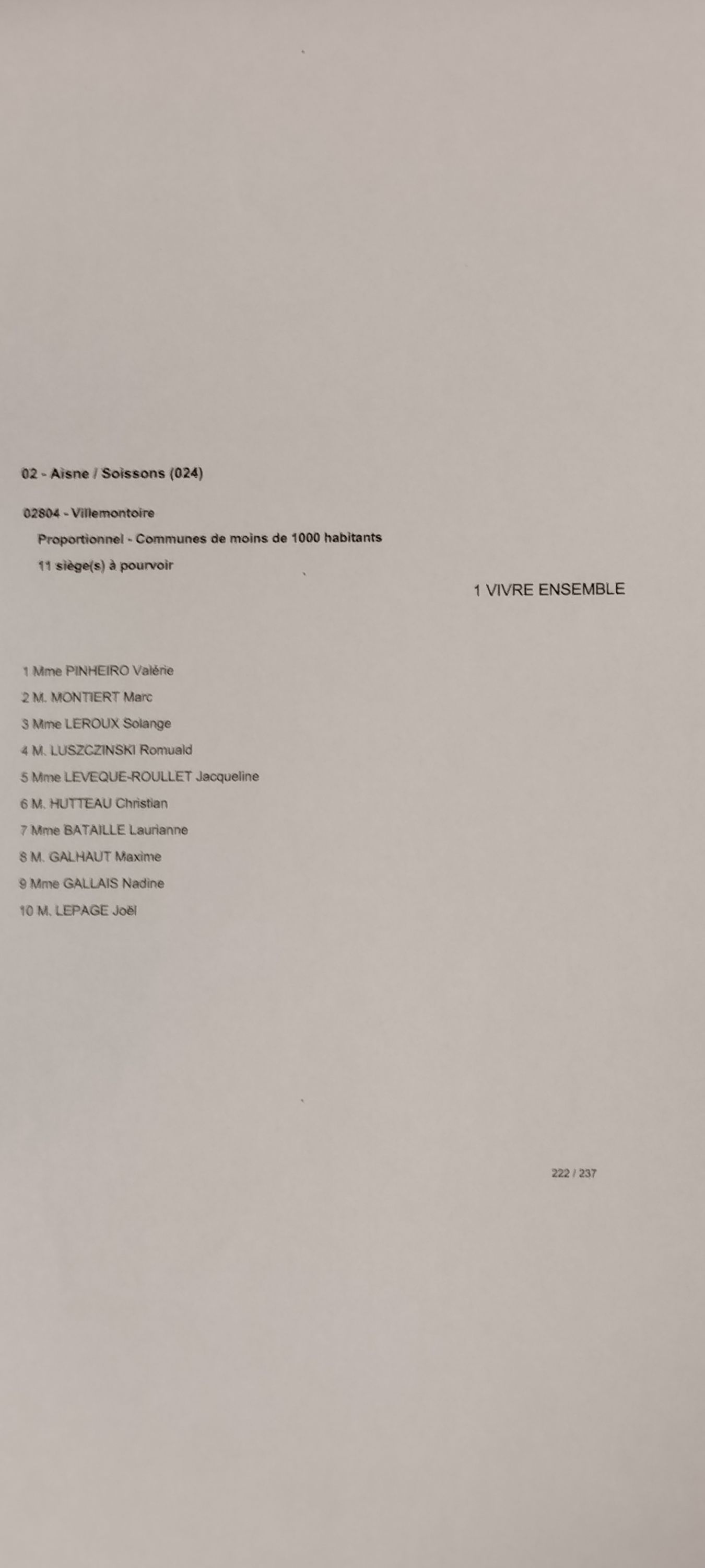 Liste électorale unique pour L'élection municipale 2026