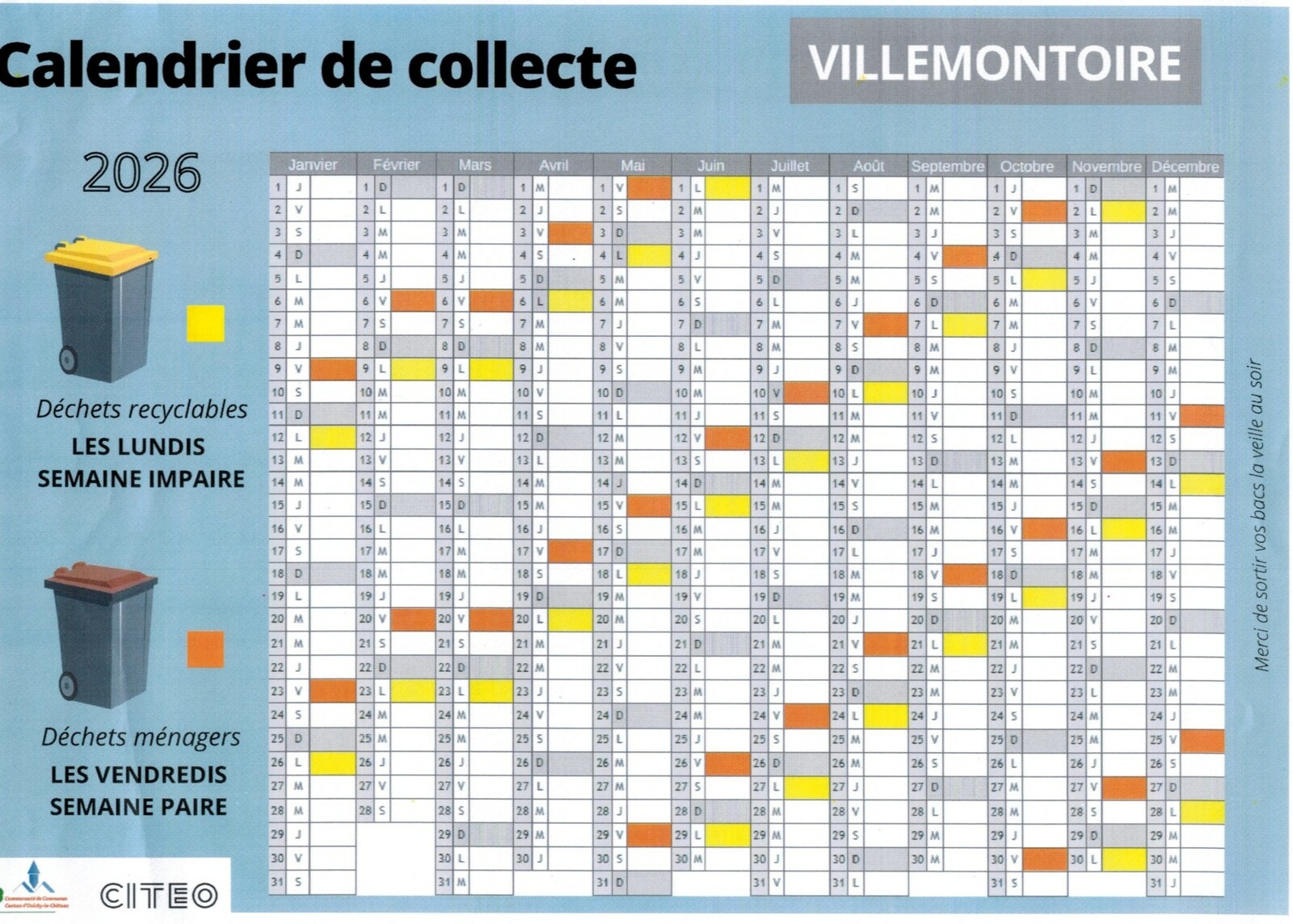 Pour information, nous vous remettons le calendrier des collectes à venir .